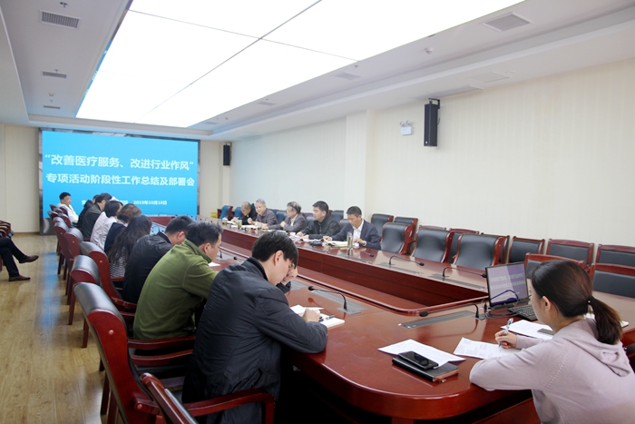 10月18日上午,我院召开“改善医疗服务、改进行业作风”专项活动阶段性总结会议。我院党委副书记、院长鲍风主持会议,党委副书记张景湖,副院长杨永晖、程耀堂,纪委书记刘胡同以及行政职能科室负责人参加会议。