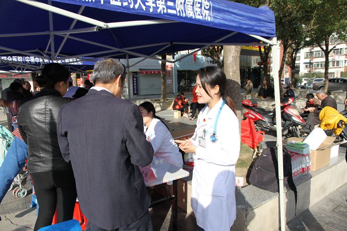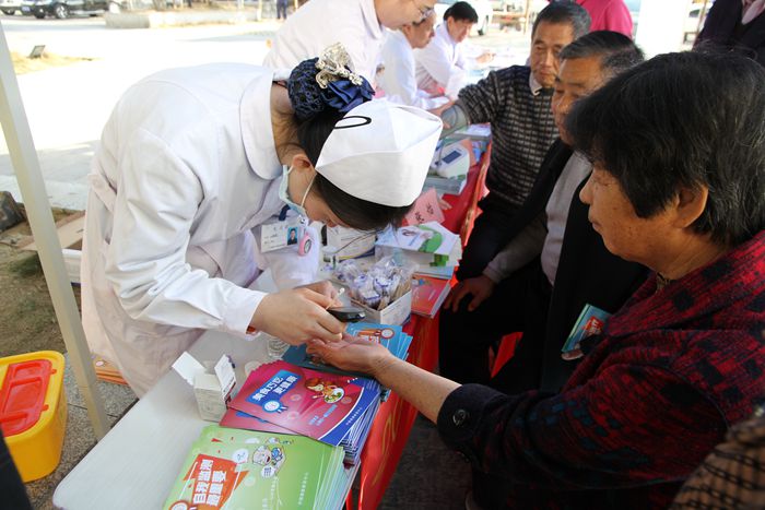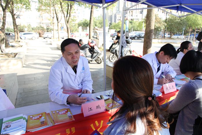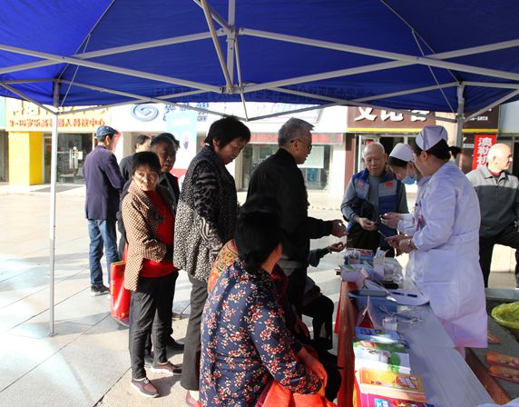 义诊现场内分泌肾病科主任江鹏、重症医学科主任史玉虎、医师谈佳佳、牛婧、江婷、孟海雷及护士长张怡为大家提供糖尿病防治咨询服务,咨询人数达到150余人次,免费测量血糖、血压150余人次,发放各种糖尿病知识手册150多本。