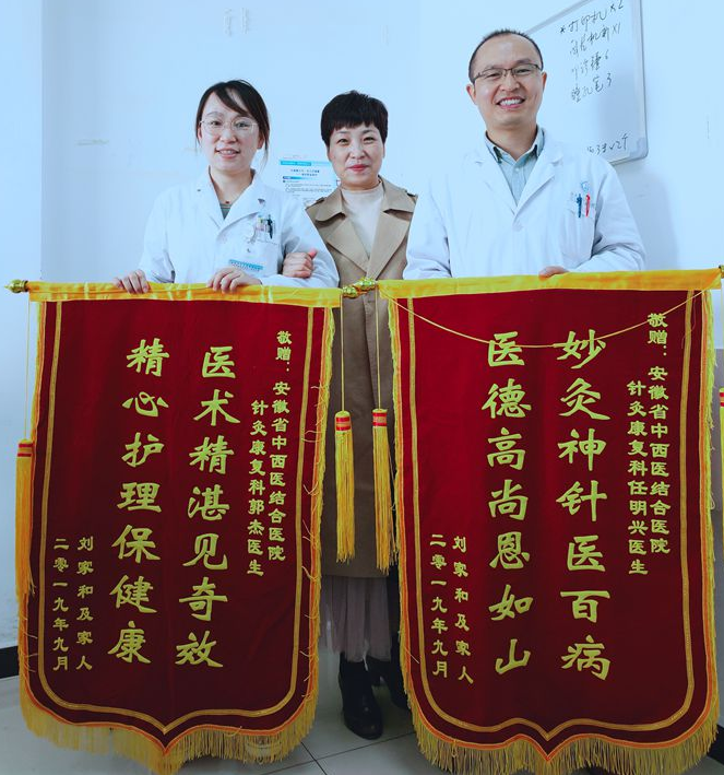 面面锦旗表心意,自医院开展“提升医疗服务质量,改善患者就医体验”活动和“不忘初心、牢记使命”主题教育以来,全院医务科室均收到多面锦旗。近日来,针灸康复一科任明兴医生、郭杰医生和神经外科(康复)全体医护人员又收到印有“妙灸神针医百病,医德高尚恩如山”、“医术精湛见奇效,精心护理保健康”、“医德高尚,医术精湛”的锦旗。一面锦旗看似普通,却意义非凡,是体现了医护人员为患者提供最优质的服务,是患者对医护人员的高度认可和赞誉;是全科医护人员汗水与心血的真实写照;也是连接医患同心共渡难关、真情无私奉献的珍贵纽带。