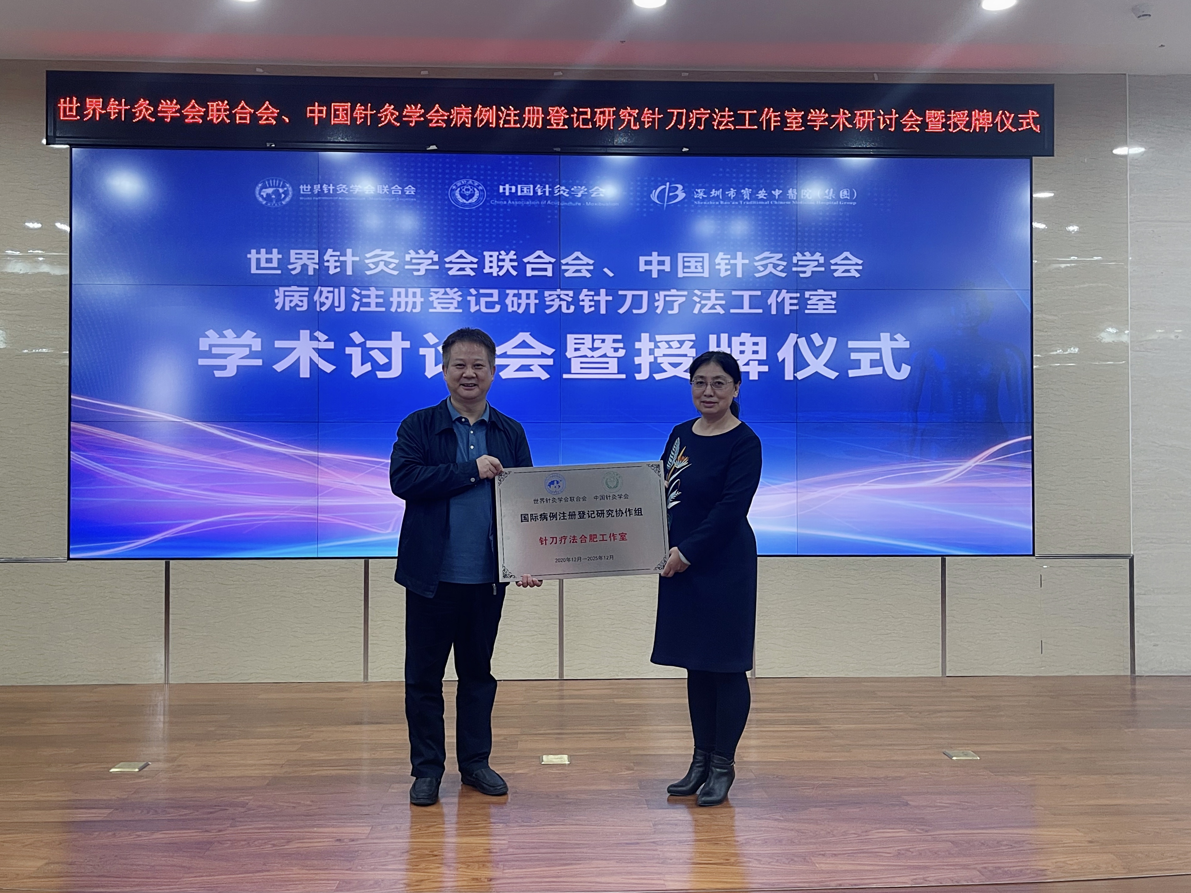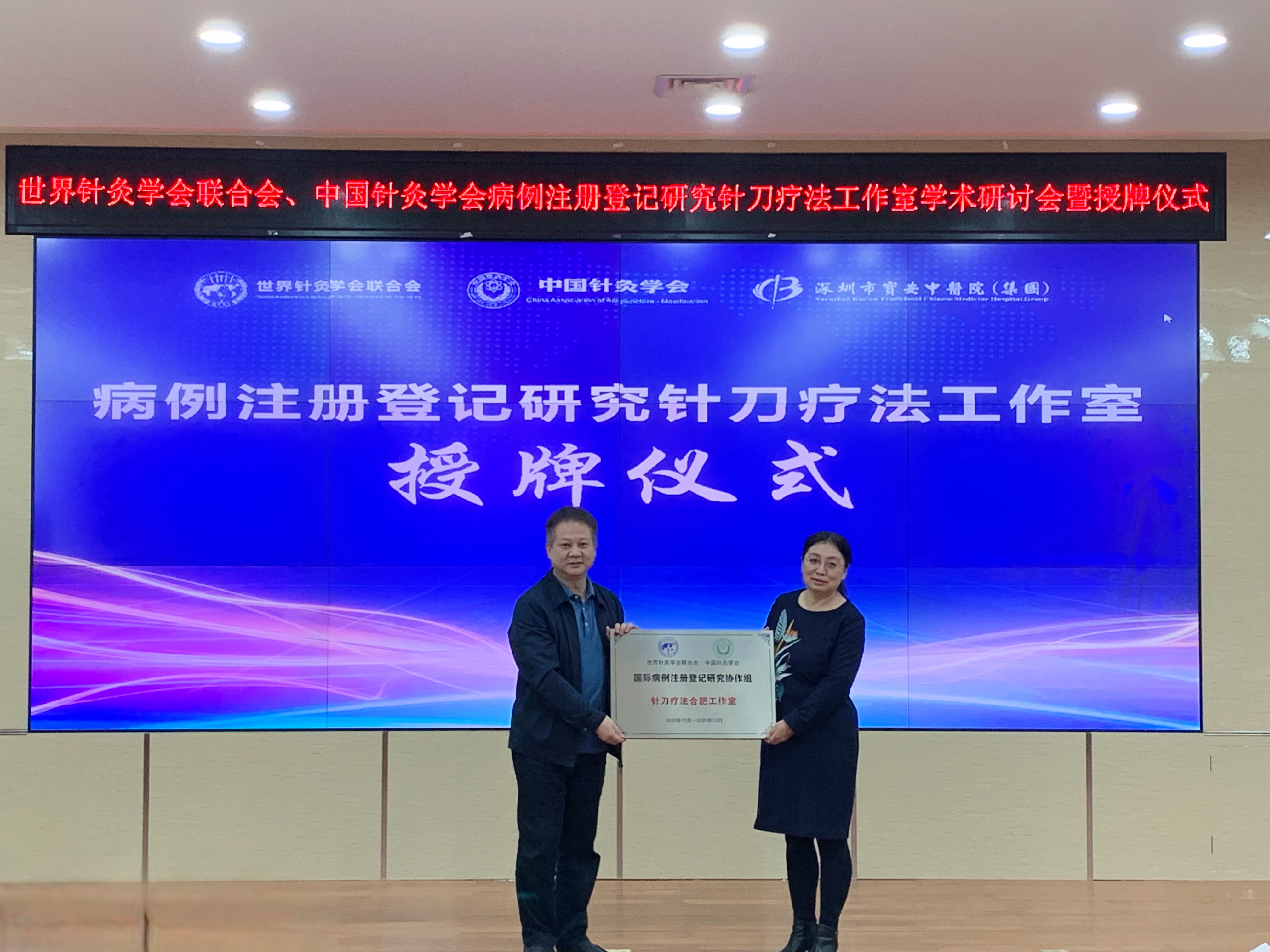 12月11日-13日,由世界针灸学会联合会、中国针灸学会主办,深圳市宝安区中医院承办的国际病例注册登记研究针刀疗法工作室学术研讨会暨授牌仪式在广东省深圳市召开,中国针灸学会副会长兼秘书长喻晓春教授、中国针灸学会副秘书长兼学术部主任文碧玲教授、中国中医科学院临床所评价中心主任何丽云教授、中国针灸学会微创针刀专业委员会主任委员吴绪平教授等20余位专家出席会议,中国针灸学会微创针刀专业委员会副主任委员、我院副院长杨永晖,针刀康复科主治医师罗时昱应邀参会。
