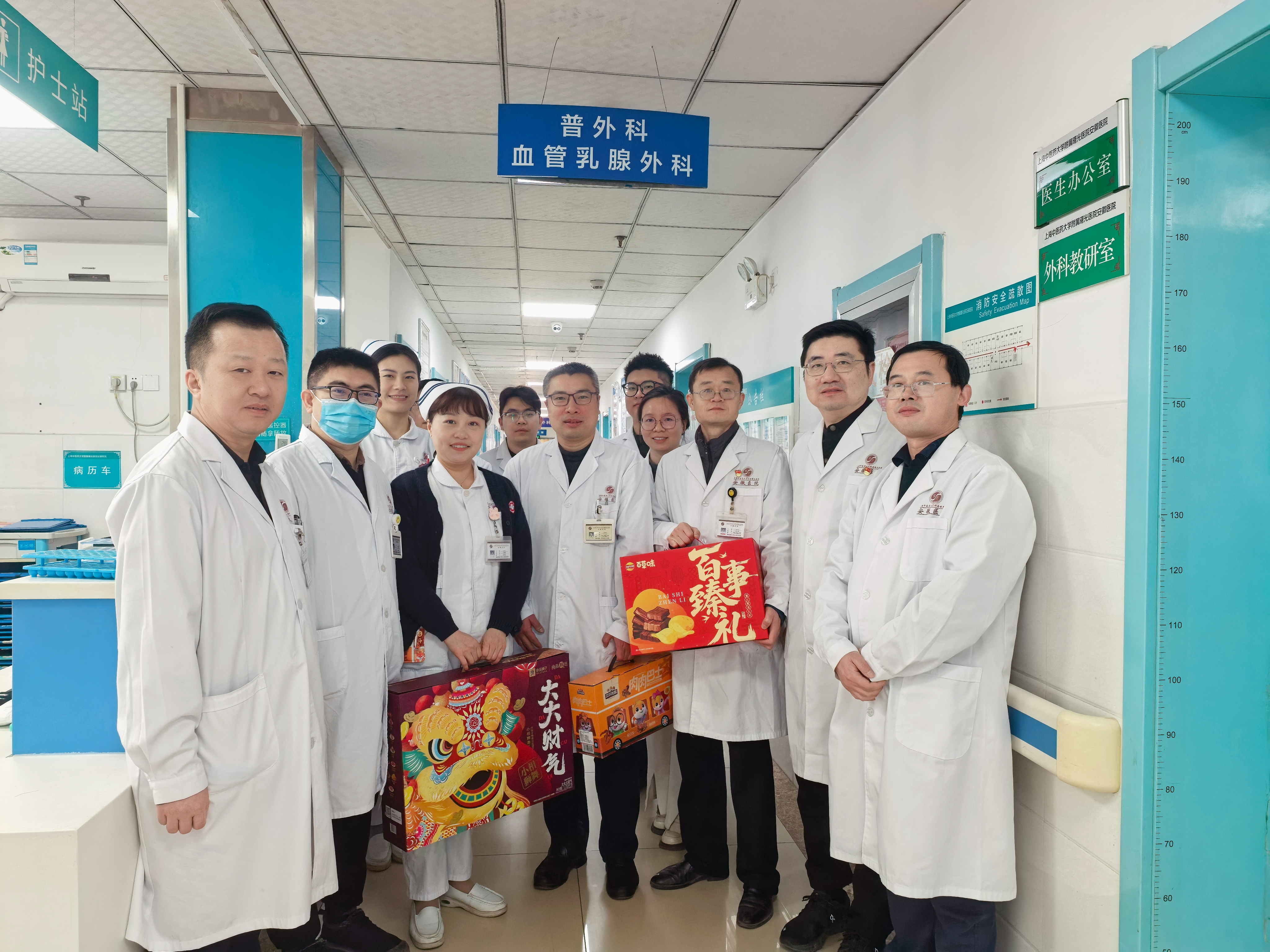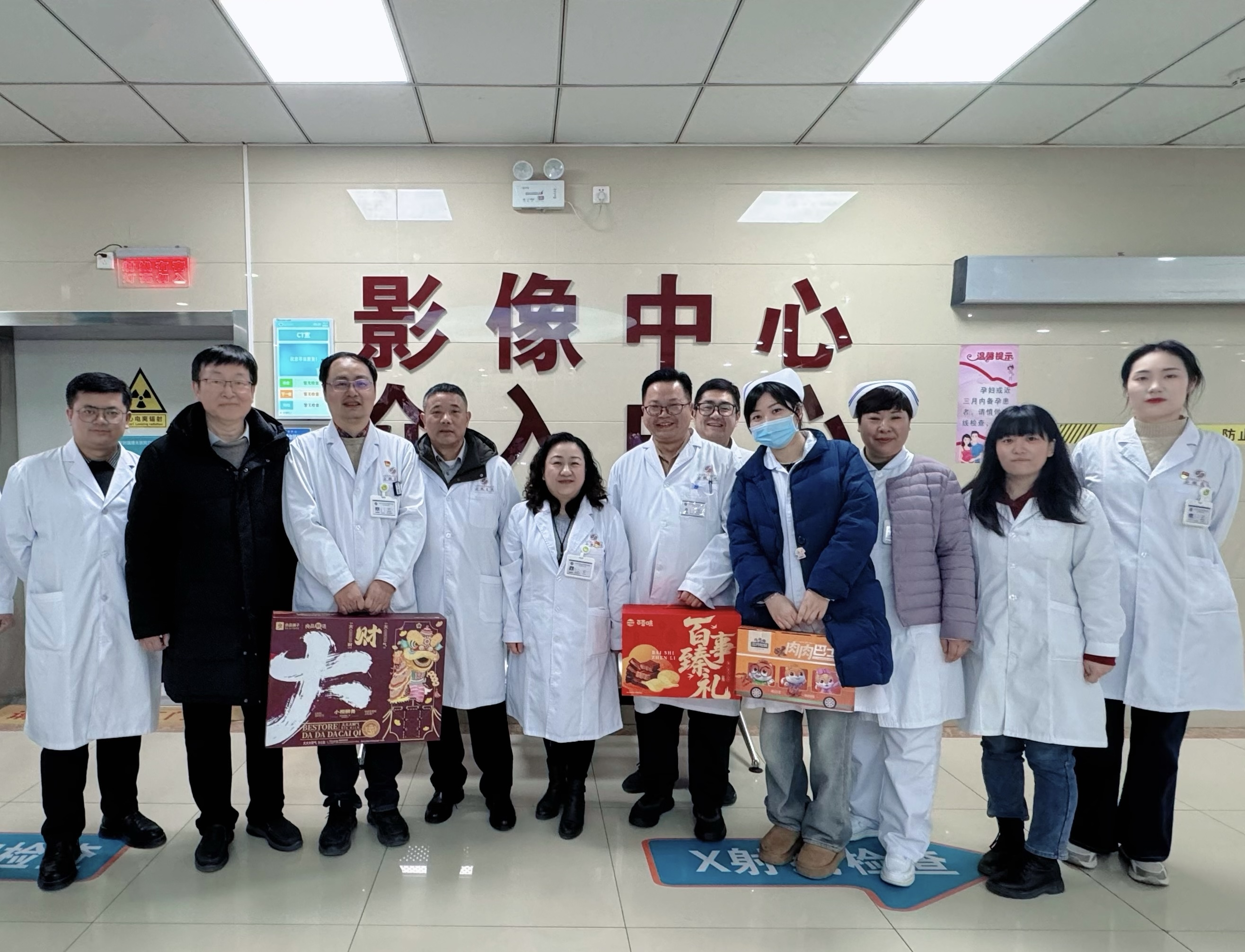 2月13日,在新春佳节即将来临之际,医院领导班子成员及部分职能部门负责人在医院党委书记张永先,医院党委副书记、执行院长李明的带领下,分组赴临床、医技、行政一线开展新春科室慰问活动,与医护职工亲切交流,向他们致以诚挚问候和新春祝福,并送上新春大礼包。
