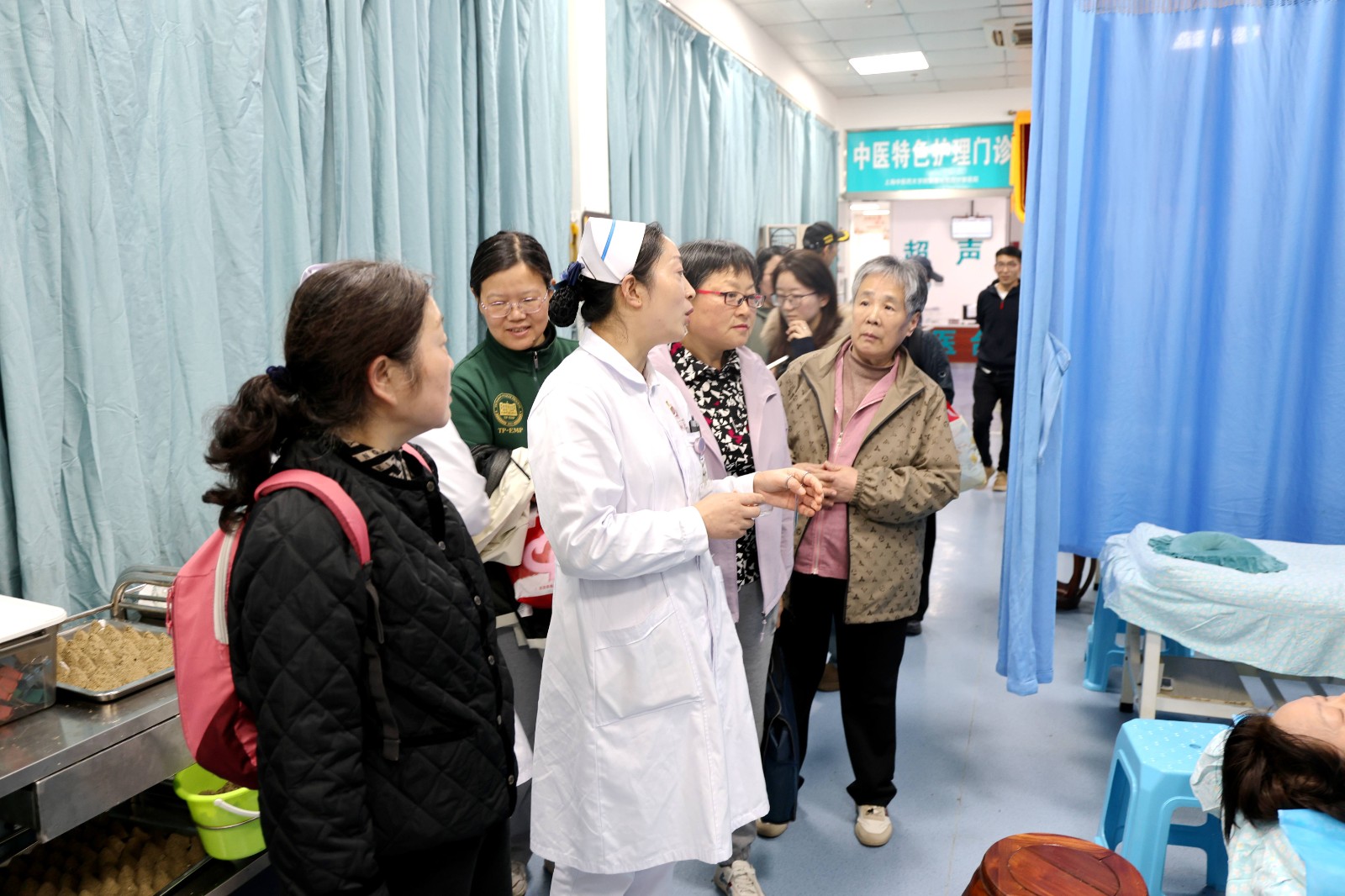 在互动体验环节,医院党员骨干现场展示中医特色护理技术与现代康复治疗技术,耳穴埋豆、艾灸、拔罐、康复评估与训练等项目吸引社区居民踊跃参与。医护人员耐心讲解中医养生知识、示范康复动作,将专业医疗服务送到群众身边,让大家近距离体验中医药文化魅力与现代康复医学成果,切实感受到国家区域医疗中心建设带来的健康福祉。