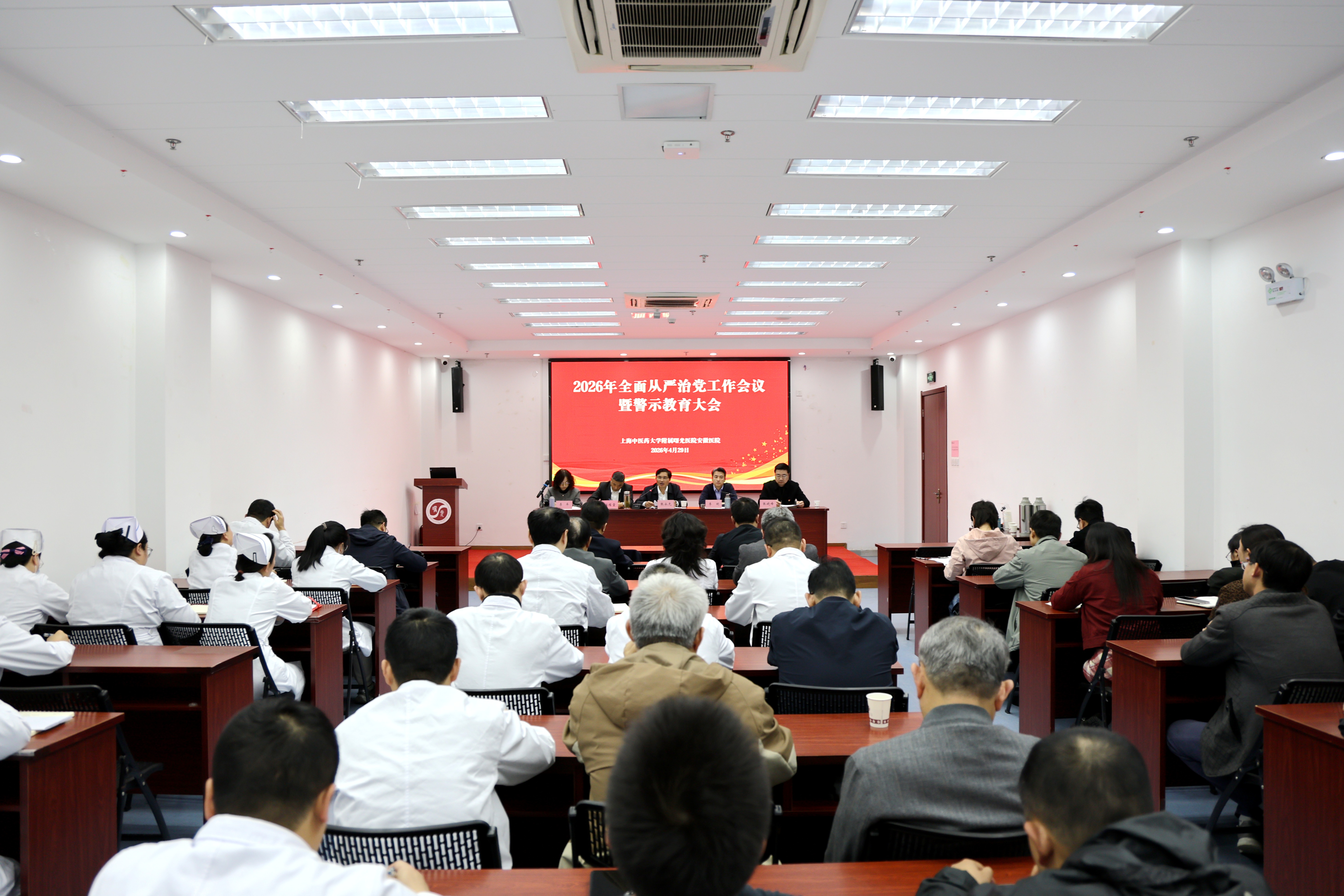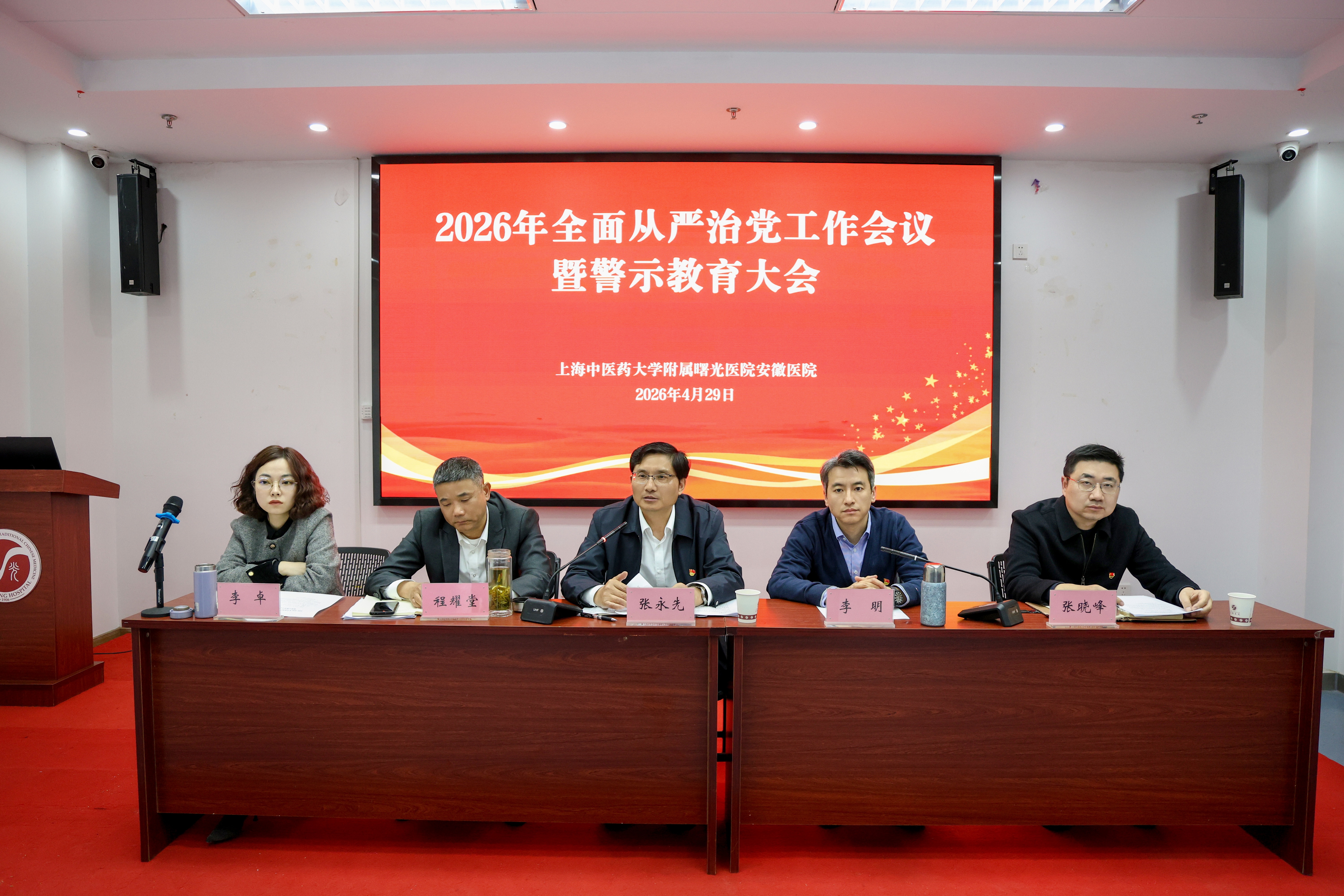 4月29日,医院召开2026年全面从严治党工作会议暨警示教育大会。医院党委书记张永先讲话,医院党委副书记、执行院长李明主持会议。