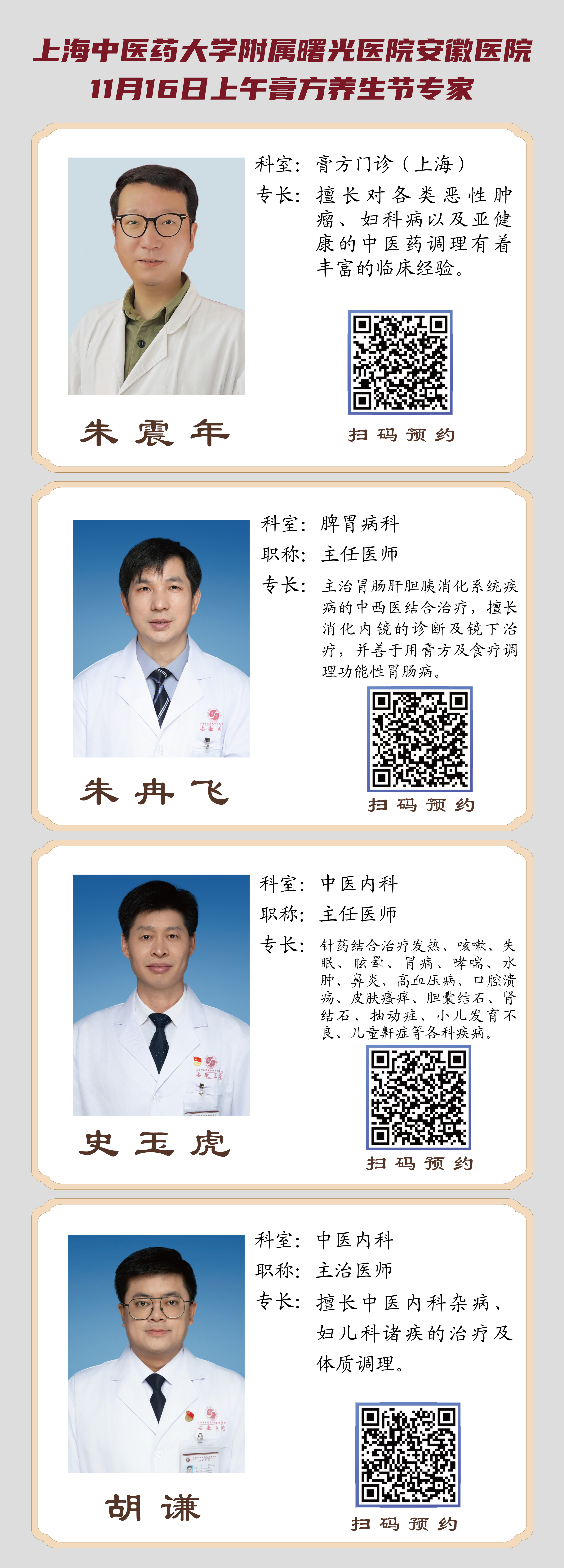11月16日上午、17日上午,上海知名中医专家来为大家把脉开方!当天开具膏方获赠中医特色护理项目哦!