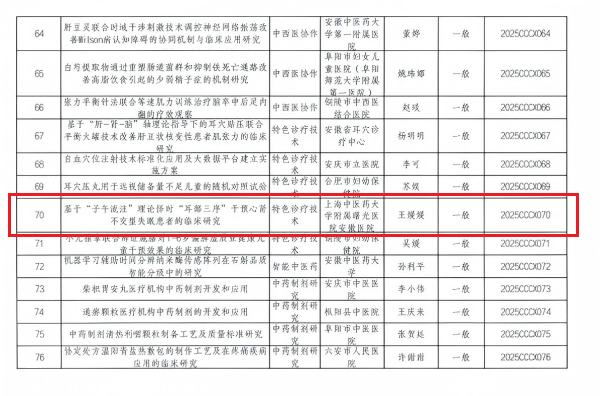 近日,安徽省中医药传承创新科研项目立项名单公布,我院护理部王媛媛科护士长主持的《基于“子午流注”理论择时“耳部三序”干预心肾不交型失眠患者的临床研究》(编号2025CCCX070)成功获批,标志着我院中医药护理科研实现新突破。