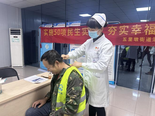 情系工地建设者,爱心义诊暖人心。晚上,在工地工人下班之际,上海曙光医院安徽医院外科第一党支部医护工作者来到合肥西站,利用自己休息时间为工地工人送健康,传递社会温暖与关怀。活动现场,上海曙光医院安徽医院专家们搭起了多个诊疗区,包括骨伤科、中医内科等等,提供推拿、刮痧、穴位贴敷、拔罐等传统中医理疗服务。专家们根据每位患者的具体情况,制定了个性化的治疗方案。其中一位长期受肩颈痛困扰的工人,经过专家的刮痧治疗后,明显感觉到肩颈部的疼痛减轻,活动范围也有所扩大。他激动地表示:“这中医治疗真是神奇,效果立竿见影,希望以后能多举办这样的活动。”除了现场治疗,专家们还向患者们介绍了一些简单的自我康复技巧和日常生活中的注意事项,如工作时如何正确用力保护腰部、如何进行肌肉放松训练等,帮助患者在日常生活中也能有效地缓解疼痛。