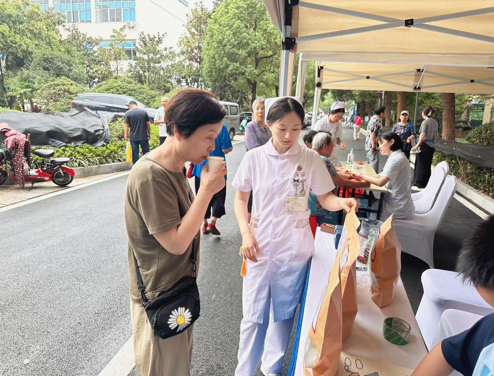 在耳穴压丸服务区,护理人员们精准的找穴、娴熟的操作手法搭配耐心的讲解,让不少居民在体验后纷纷表示身心得到了放松,切实体会到了中医的魅力。中医药茶饮体验区也吸引了众多群众驻足,医护人员现场冲泡具有养生功效的中药茶饮,向大家介绍茶饮的成分及功效,居民们在品尝的同时,也对中医药文化有了更加直观的感受。