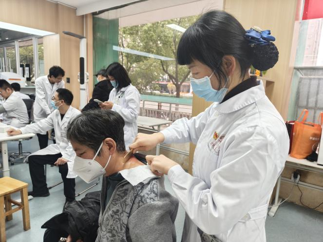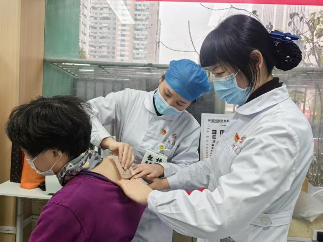 中医技术,特色惠民。 活动现场,护理团队充分发挥中医药特色优势,成为了另一道亮丽的风景线。经验丰富的护理老师们为有需要的居民提供了穴位贴敷、刮痧等中医适宜技术体验。这些操作简便、副作用小、效果显著的外治法,对于缓解局部疼痛、麻木、寒湿不适等症状深受居民欢迎。护理老师一边操作,一边讲解相关养生保健知识,让居民在体验中感受中医文化的博大精深。