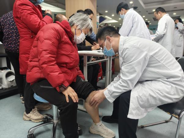精准把脉,细致诊疗。 外科第一党支部的专家们耐心细致地为每一位前来咨询的居民进行体格检查、分析病情。他们通过传统的诊脉、细致的问诊及体格检查,对患有颈椎病、肩周炎、腰椎间盘突出症、膝关节骨性关节炎等常见颈肩腰腿痛疾病的居民进行了专业诊断,并提供了个性化的治疗建议和康复指导,解答了居民诸多关于疼痛管理、术后康复、用药安全的疑惑。