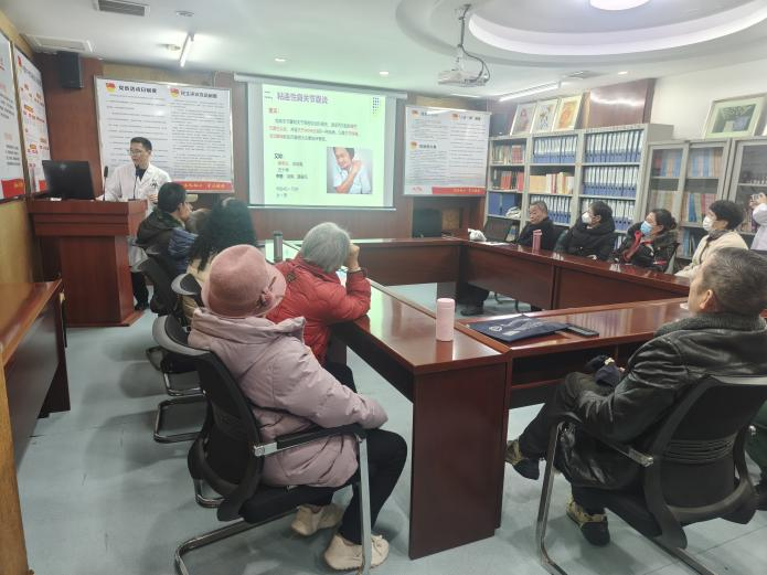 知识科普,防病先行。 运动医学科辛主任以《远离“冻结肩”——肩周炎的预防与康复》为题,为社区居民带来了一场深入浅出、贴近生活的健康讲座。主任从肩周炎的病因、典型症状讲起,重点介绍了日常生活中的预防措施、科学锻炼方法及阶梯化治疗理念,引导居民树立“早预防、早发现、早治疗”的健康意识,现场互动踊跃,反响热烈。