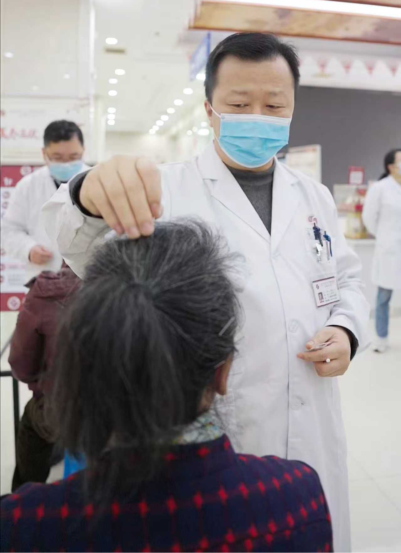(吴飞虎主任为参加义诊患者进行针灸治疗)